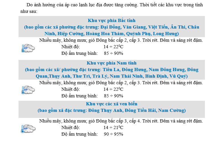 • DỰ BÁO THỜI TIẾT ĐIỂM 10 NGÀY KHU VỰC HƯNG YÊN TỪ ĐÊM 15 - 25/12/2025