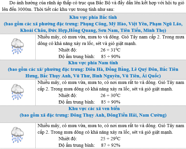 • DỰ BÁO THỜI TIẾT KHU VỰC HƯNG YÊN ĐÊM 30/11 NGÀY 01/12/2025