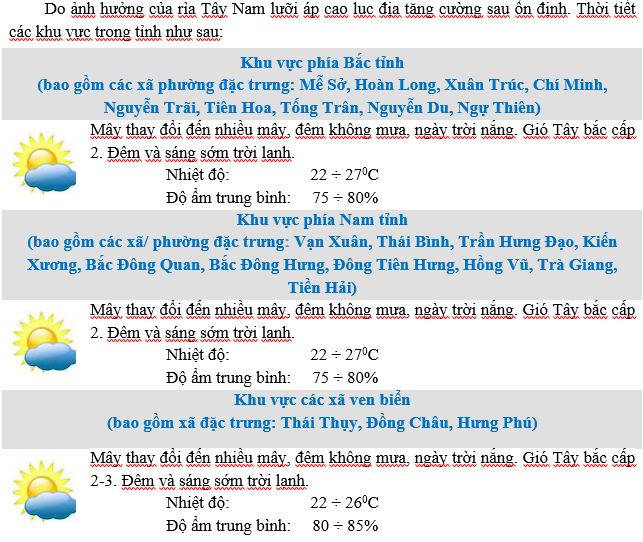 • DỰ BÁO THỜI TIẾT ĐIỂM 10 NGÀY KHU VỰC HƯNG YÊN TỪ ĐÊM 04 - 14/12/2025
