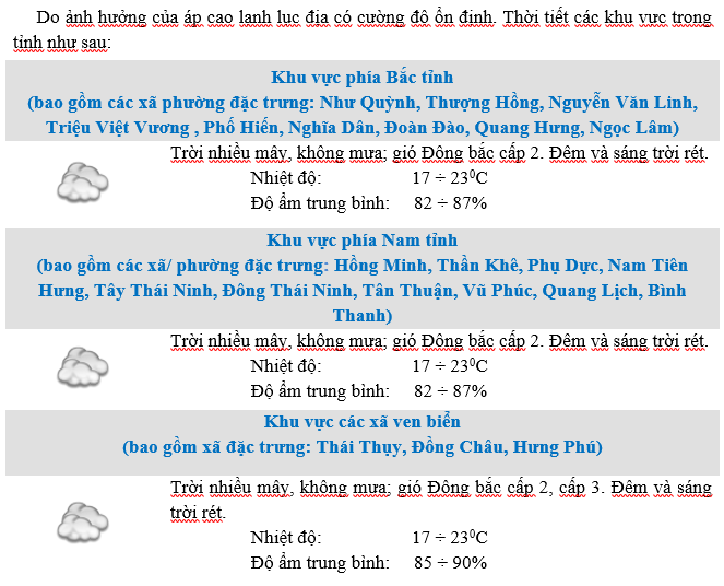 DỰ BÁO THỜI TIẾT KHU VỰC HƯNG YÊN ĐÊM 17 NGÀY 18/12/2025