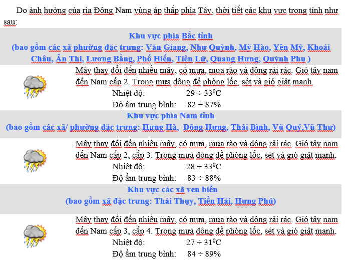 • DỰ BÁO THỜI TIẾT KHU VỰC HƯNG YÊN ĐÊM 30/11 NGÀY 01/12/2025