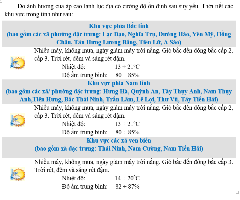• DỰ BÁO THỜI TIẾT KHU VỰC HƯNG YÊN ĐÊM 03 NGÀY 04/12/2025