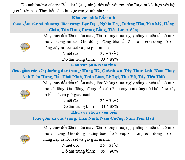 DỰ BÁO THỜI TIẾT KHU VỰC HƯNG YÊN ĐÊM 21 NGÀY 22/9/2025