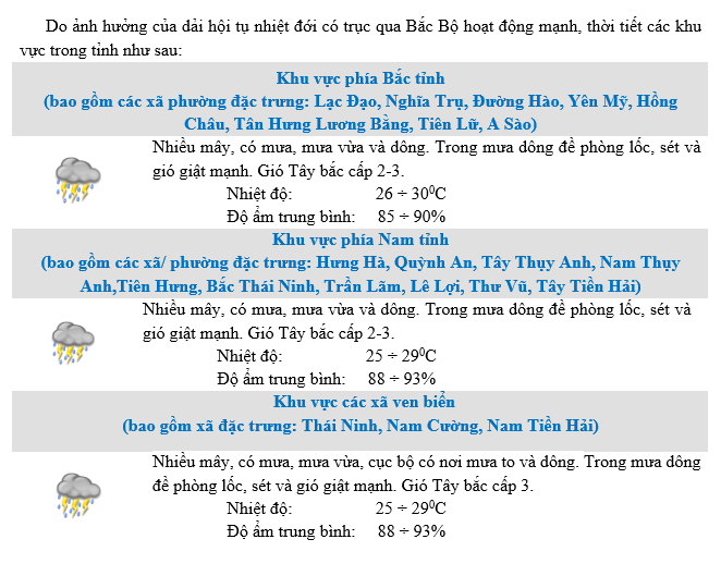 • DỰ BÁO THỜI TIẾT KHU VỰC HƯNG YÊN ĐÊM 30/11 NGÀY 01/12/2025