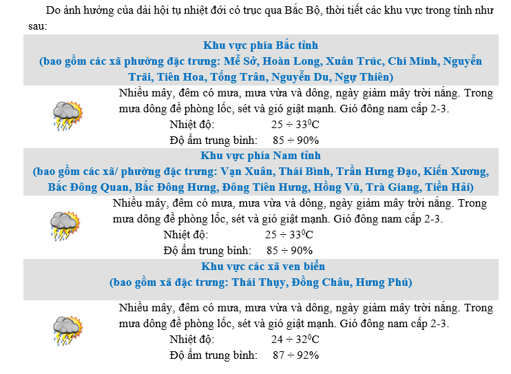 • DỰ BÁO THỜI TIẾT KHU VỰC HƯNG YÊN ĐÊM 02 NGÀY 03/12/2025