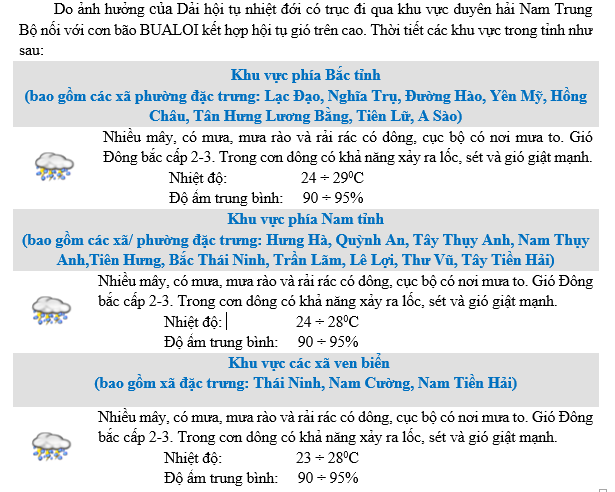 • DỰ BÁO THỜI TIẾT KHU VỰC HƯNG YÊN ĐÊM 30/11 NGÀY 01/12/2025