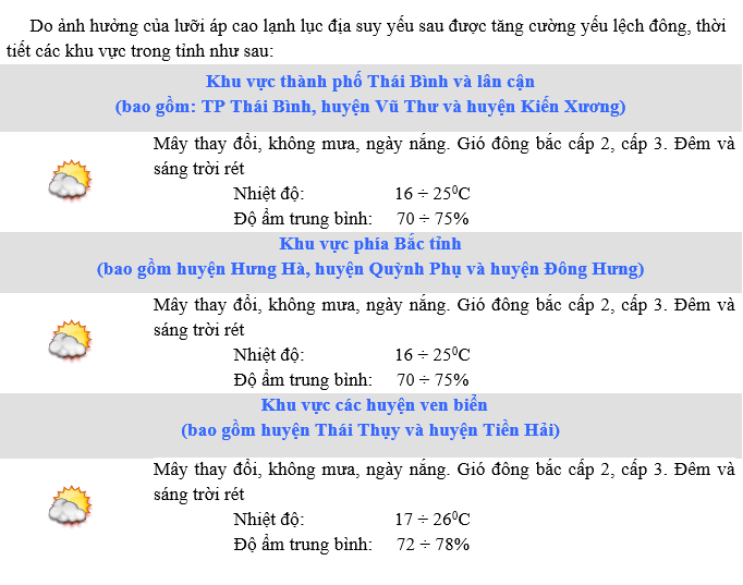 DỰ BÁO THỜI TIẾT KHU VỰC THÁI BÌNH ĐÊM 01 NGÀY 02/12/2024