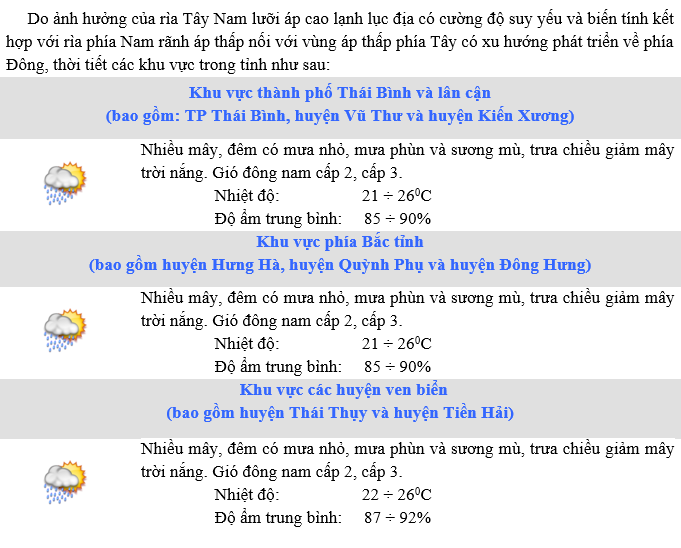 DỰ BÁO THỜI TIẾT KHU VỰC THÁI BÌNH ĐÊM 03 NGÀY 04/3/2025