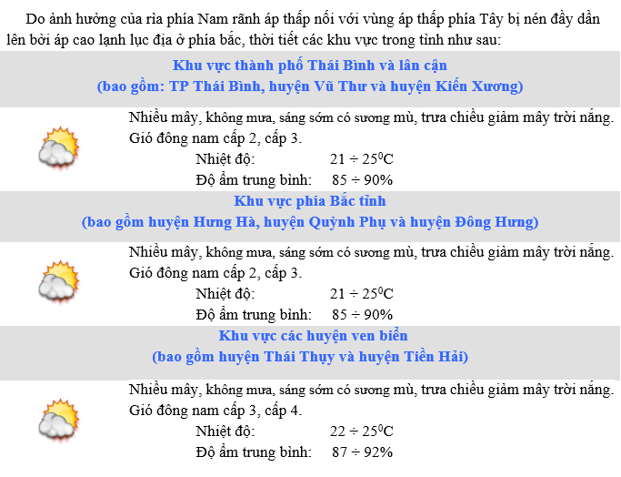 DỰ BÁO THỜI TIẾT KHU VỰC THÁI BÌNH ĐÊM 04 NGÀY 05/3/2025