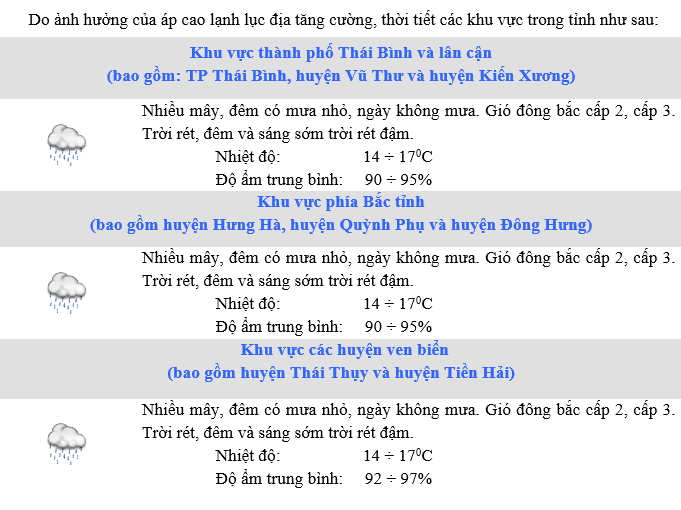 DỰ BÁO THỜI TIẾT KHU VỰC THÁI BÌNH ĐÊM 06 NGÀY 07/3/2025
