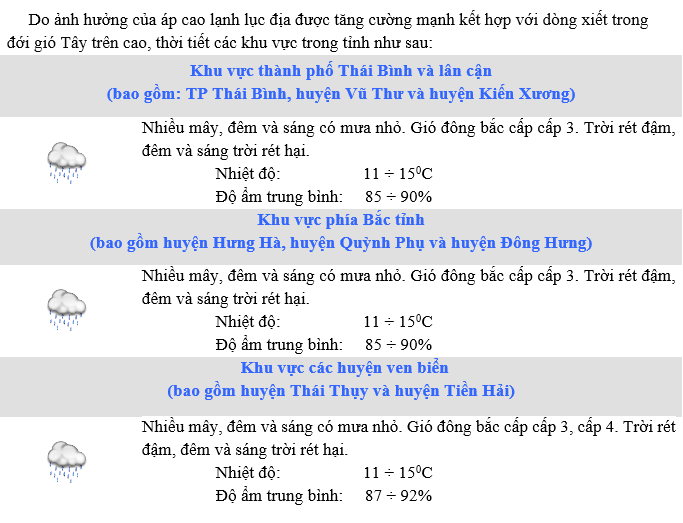 DỰ BÁO THỜI TIẾT KHU VỰC THÁI BÌNH ĐÊM 07 NGÀY 08/02/2025