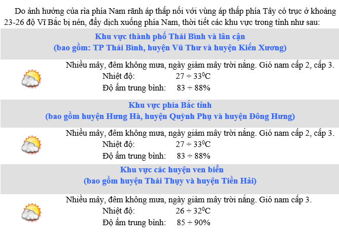 DỰ BÁO THỜI TIẾT KHU VỰC THÁI BÌNH ĐÊM 07 NGÀY 08/5/2025