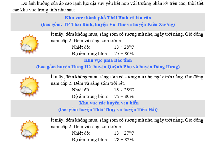 DỰ BÁO THỜI TIẾT KHU VỰC THÁI BÌNH ĐÊM 08 NGÀY 09/12/2023
