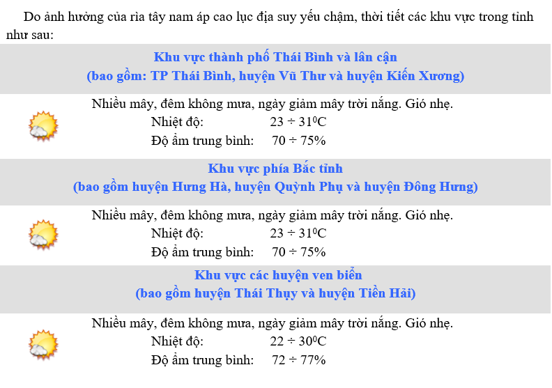 DỰ BÁO THỜI TIẾT KHU VỰC THÁI BÌNH ĐÊM 09 NGÀY 10/10/2024