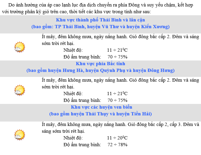 DỰ BÁO THỜI TIẾT KHU VỰC THÁI BÌNH ĐÊM 13 NGÀY 14/01/2025