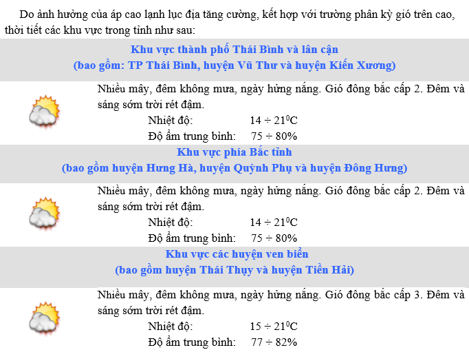 DỰ BÁO THỜI TIẾT KHU VỰC THÁI BÌNH ĐÊM 15 NGÀY 16/01/2025