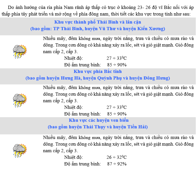 DỰ BÁO THỜI TIẾT KHU VỰC THÁI BÌNH ĐÊM 15 NGÀY 16/6/2025