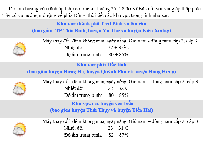 DỰ BÁO THỜI TIẾT KHU VỰC THÁI BÌNH ĐÊM 17 NGÀY 18/4/2025