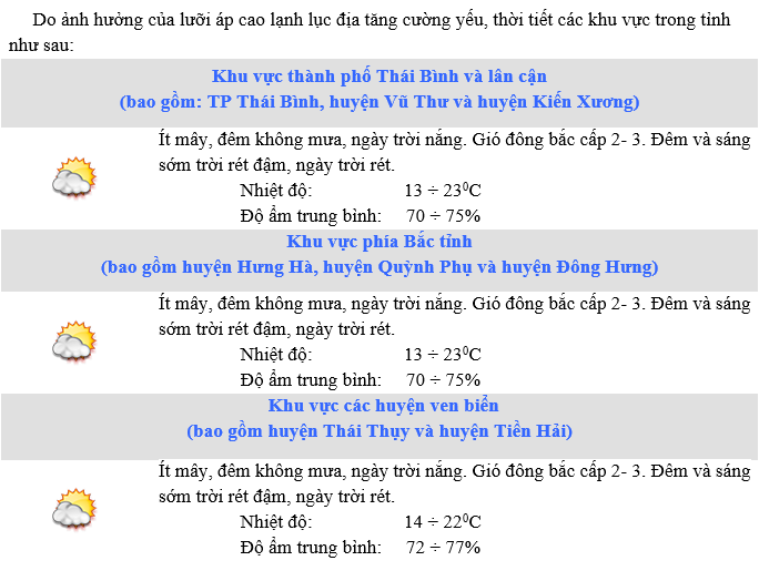 DỰ BÁO THỜI TIẾT KHU VỰC THÁI BÌNH ĐÊM 18 NGÀY 19/12/2024