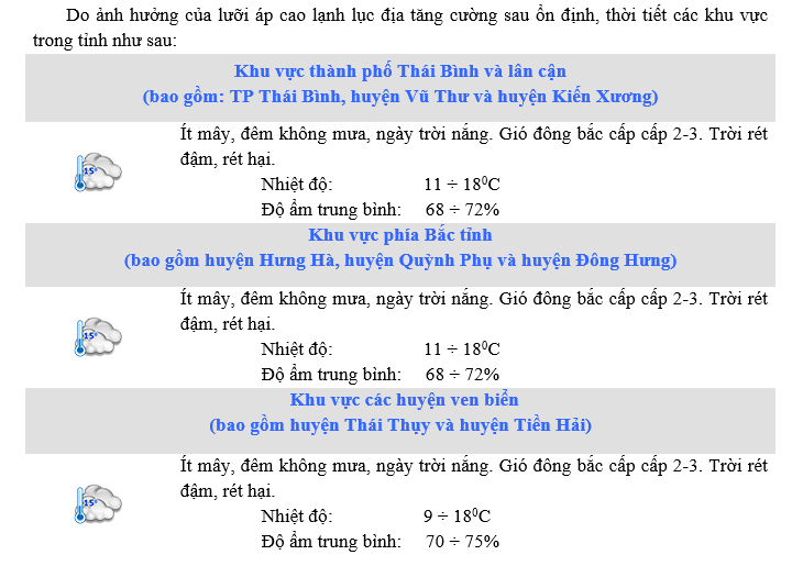 DỰ BÁO THỜI TIẾT KHU VỰC THÁI BÌNH ĐÊM 23 NGÀY 24/12/2023