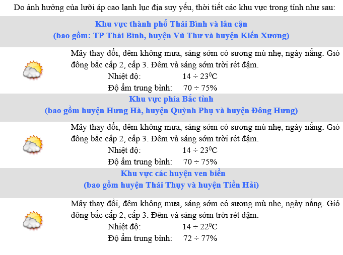 DỰ BÁO THỜI TIẾT KHU VỰC THÁI BÌNH ĐÊM 23 NGÀY 24/12/2024