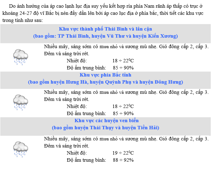 DỰ BÁO THỜI TIẾT KHU VỰC THÁI BÌNH ĐÊM 24 NGÀY 25/01/2025