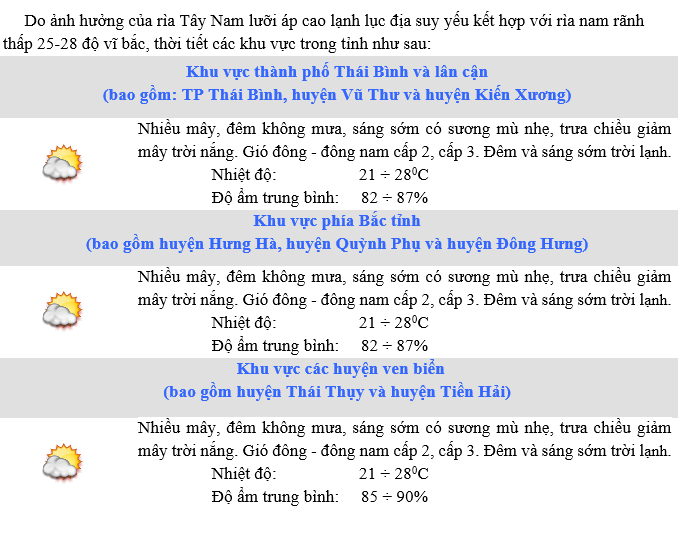 DỰ BÁO THỜI TIẾT KHU VỰC THÁI BÌNH ĐÊM 25 NGÀY 26/3/2025