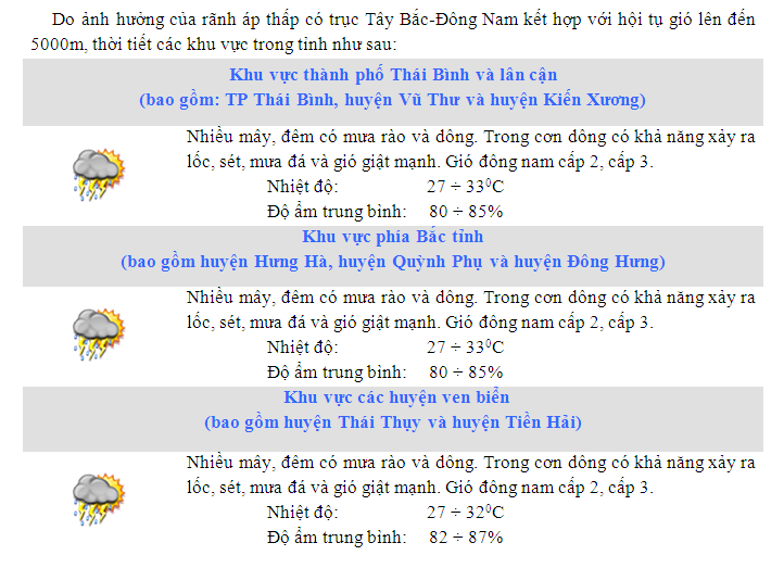 DỰ BÁO THỜI TIẾT KHU VỰC THÁI BÌNH ĐÊM 25 NGÀY 26/6/2025
