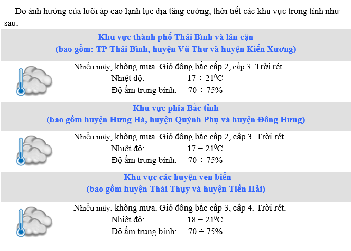 DỰ BÁO THỜI TIẾT KHU VỰC THÁI BÌNH ĐÊM 26 NGÀY 27/12/2024