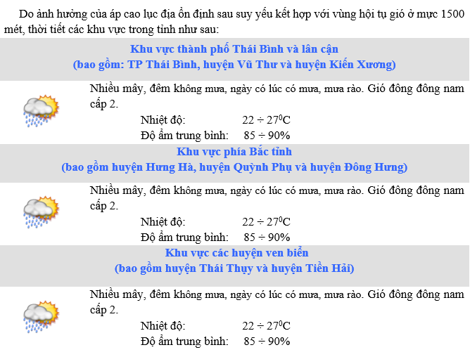 DỰ BÁO THỜI TIẾT KHU VỰC THÁI BÌNH ĐÊM 26 NGÀY 27/5/2025