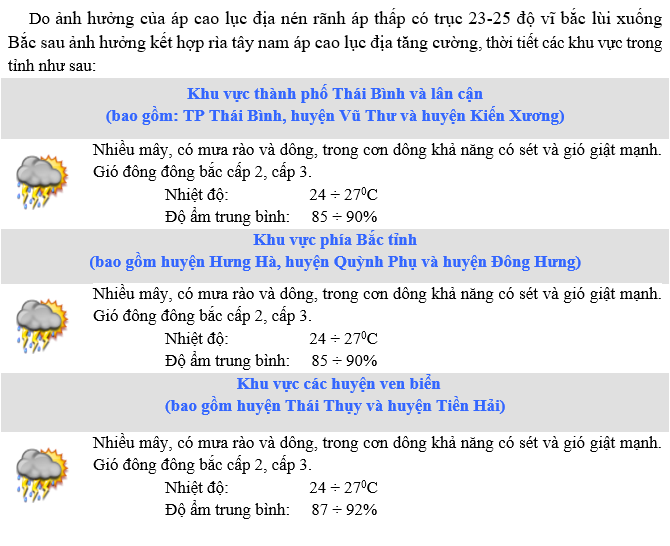 DỰ BÁO THỜI TIẾT KHU VỰC THÁI BÌNH ĐÊM 27 NGÀY 28/4/2025