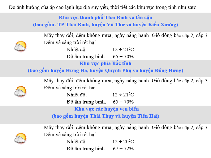 DỰ BÁO THỜI TIẾT KHU VỰC THÁI BÌNH ĐÊM 28 NGÀY 29/01/2025