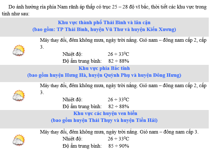 DỰ BÁO THỜI TIẾT KHU VỰC THÁI BÌNH ĐÊM 30 NGÀY 31/5/2025