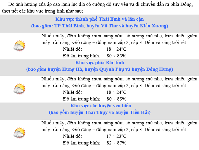 DỰ BÁO THỜI TIẾT KHU VỰC THÁI BÌNH ĐÊM 31/01 NGÀY 01/02/2025