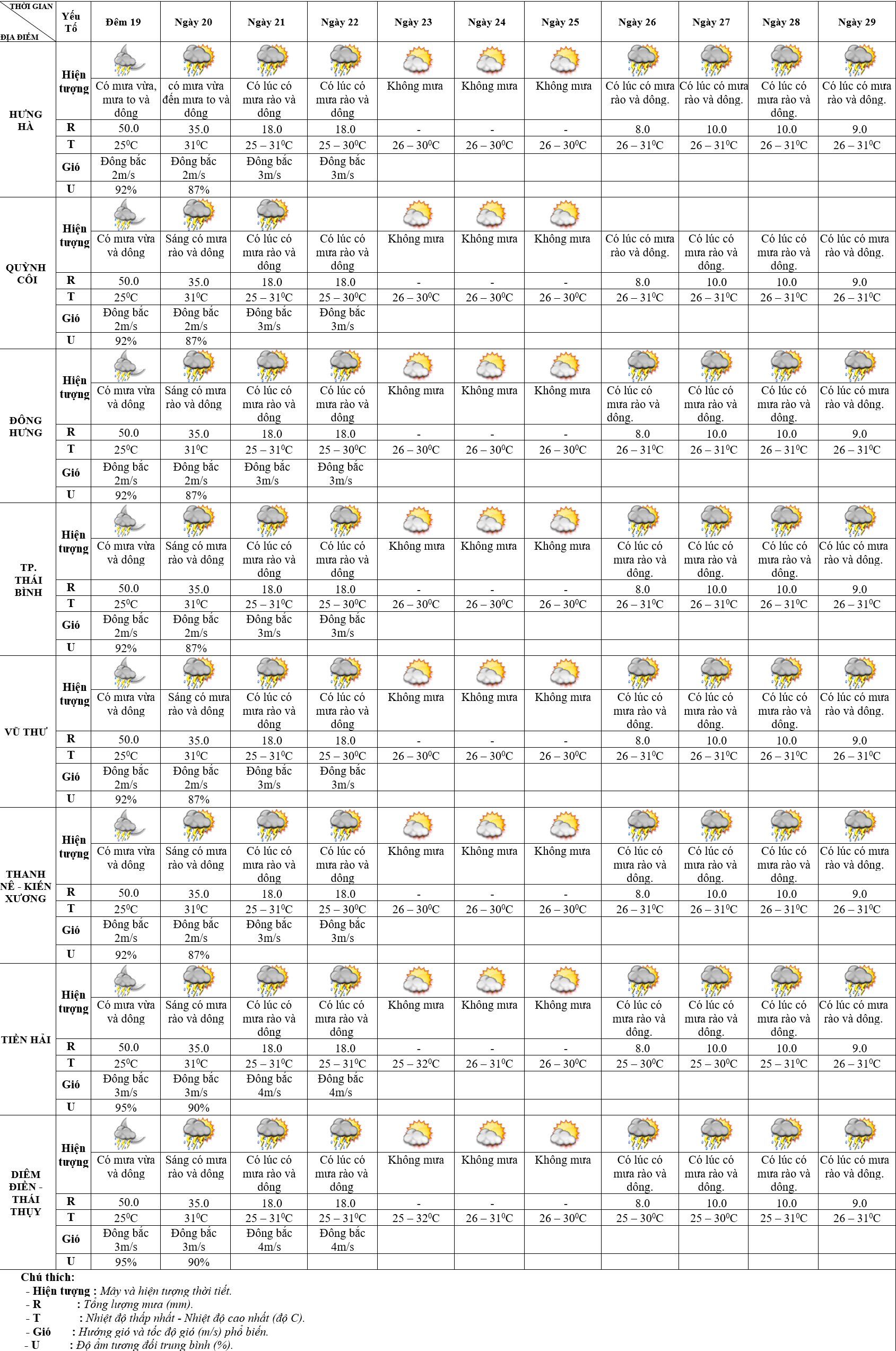 BẢN TIN THỜI TIẾT KHU VỰC THÁI BÌNH 10 NGÀY ( TỪ ĐÊM 19/9 - 29/9/2024)