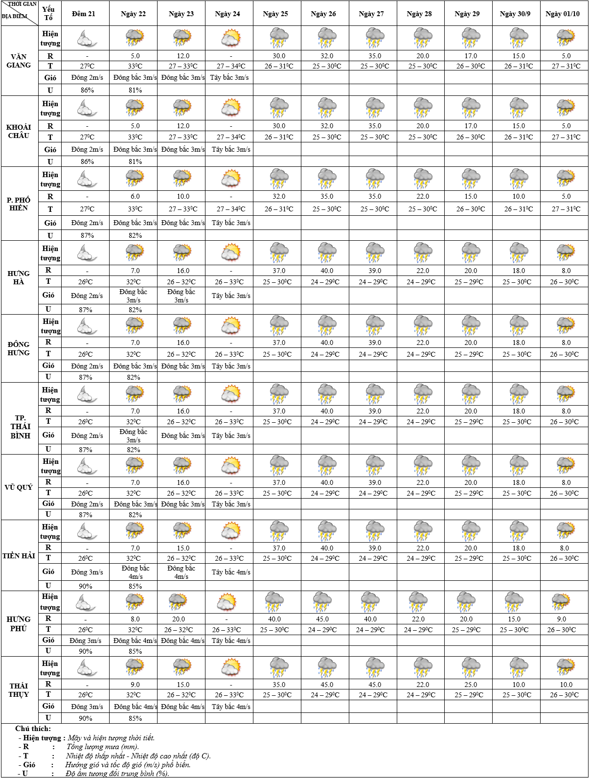 DỰ BÁO THỜI TIẾT 10 NGÀY KHU VỰC HƯNG YÊN TỪ ĐÊM 21/9 - 01/10/2025