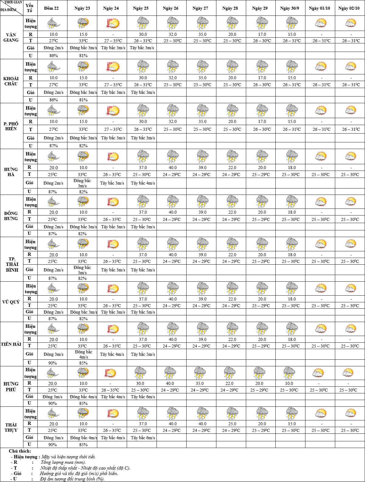 DỰ BÁO THỜI TIẾT 10 NGÀY KHU VỰC HƯNG YÊN TỪ ĐÊM 22/9 - 02/10/2025
