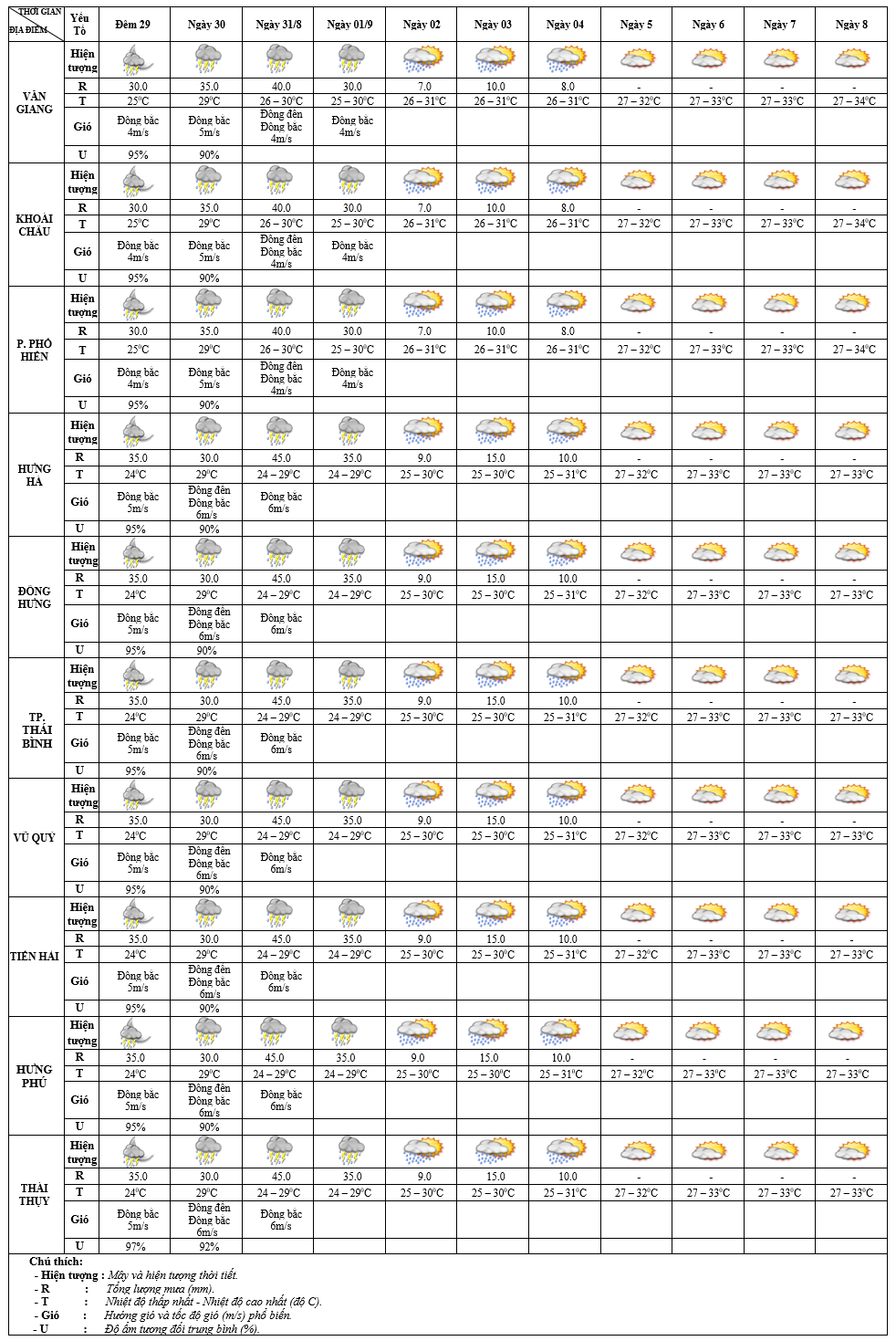 DỰ BÁO THỜI TIẾT 10 NGÀY KHU VỰC HƯNG YÊN TỪ ĐÊM 29/8 - 08/9/2025