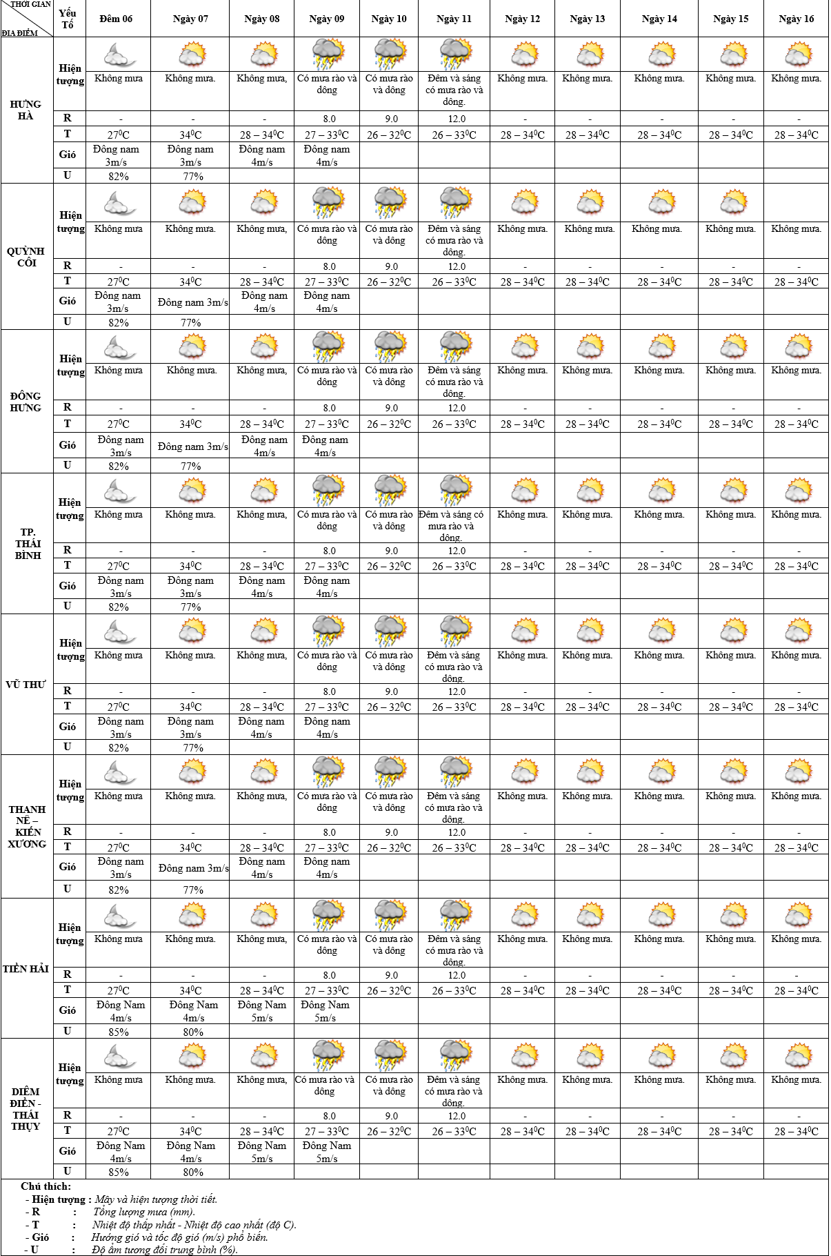 DỰ BÁO THỜI TIẾT 10 NGÀY KHU VỰC THÁI BÌNH TỪ ĐÊM 06 – 16/6/2025