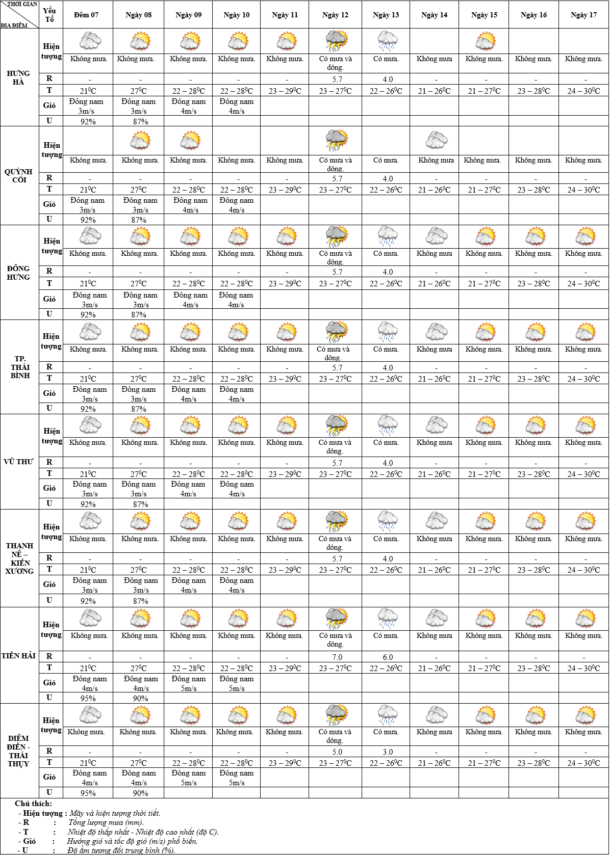 DỰ BÁO THỜI TIẾT 10 NGÀY KHU VỰC THÁI BÌNH TỪ ĐÊM 07 – 17/4/2025