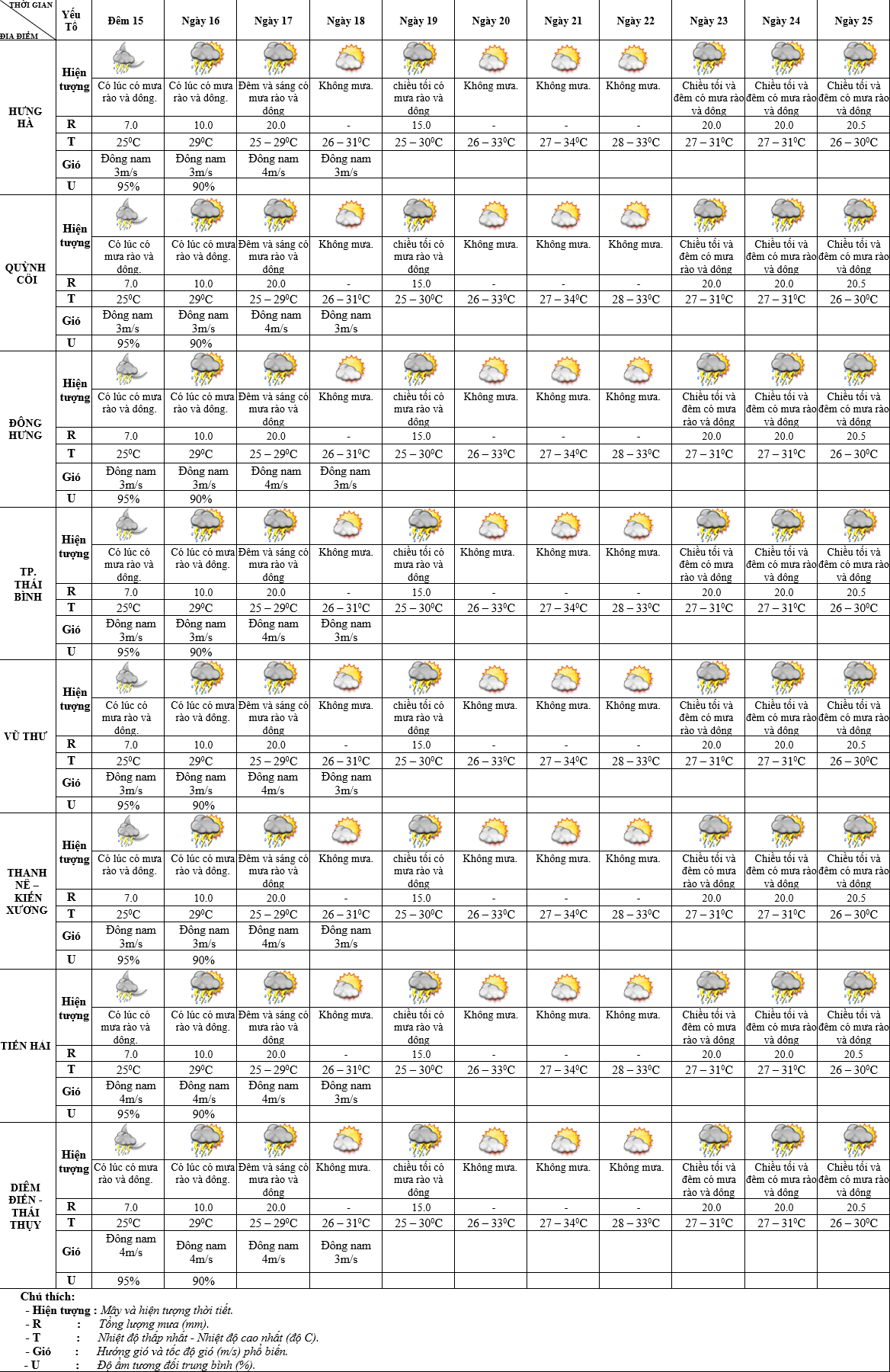 DỰ BÁO THỜI TIẾT 10 NGÀY KHU VỰC THÁI BÌNH TỪ ĐÊM 15 – 25/5/2025
