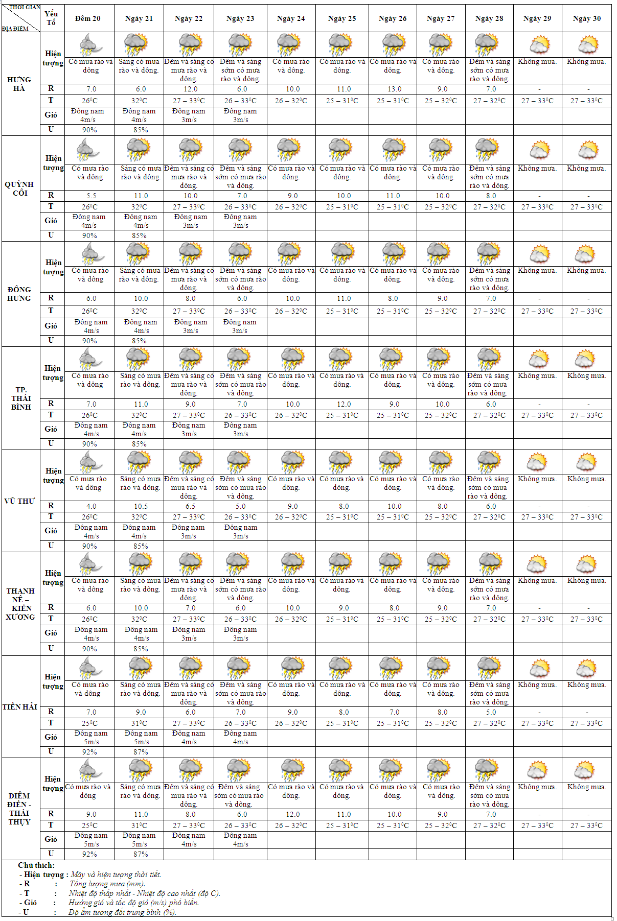 DỰ BÁO THỜI TIẾT 10 NGÀY KHU VỰC THÁI BÌNH TỪ ĐÊM 20 – 30/6/2025