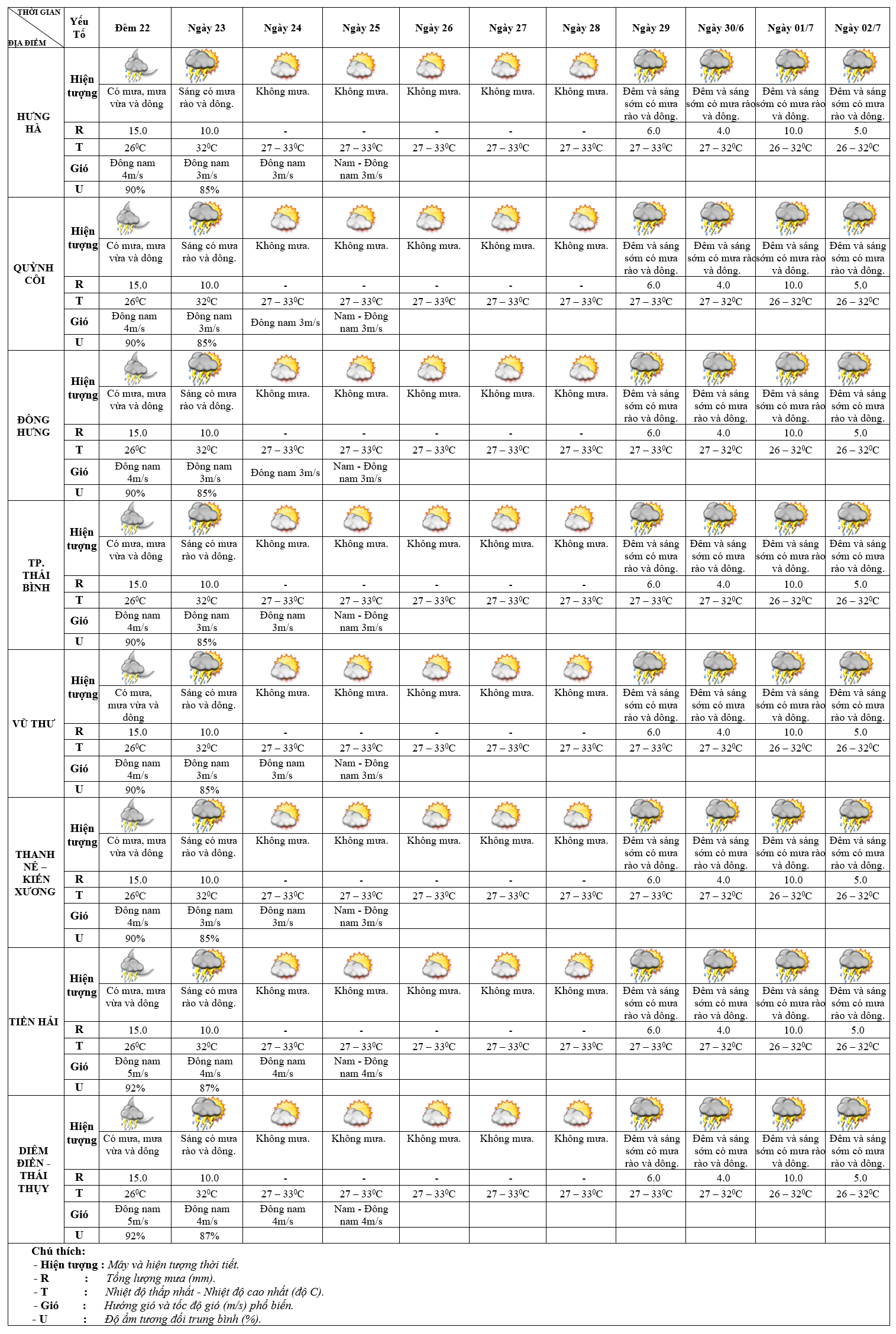 DỰ BÁO THỜI TIẾT 10 NGÀY KHU VỰC THÁI BÌNH TỪ ĐÊM 22/6 – 02/7/2025