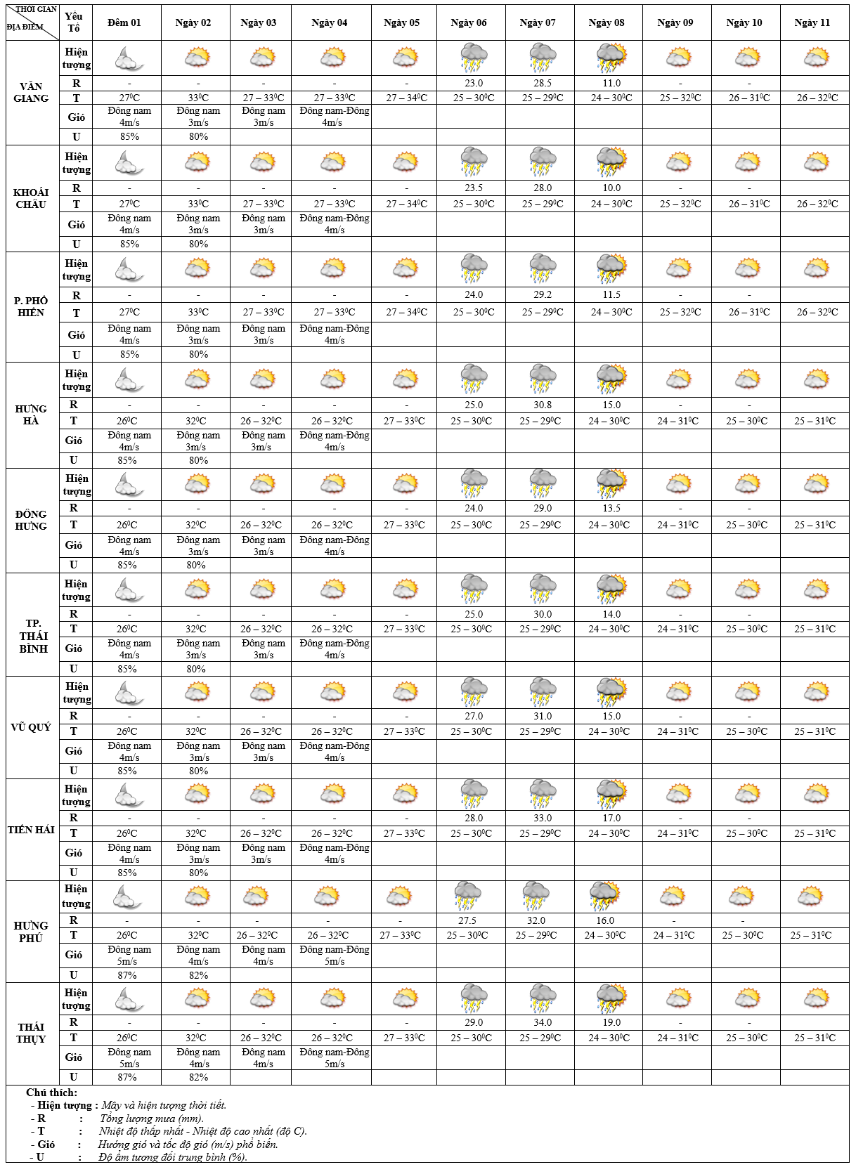 DỰ BÁO THỜI TIẾT ĐIỂM 10 NGÀY KHU VỰC HƯNG YÊN TỪ ĐÊM 01 - 11/10/2025