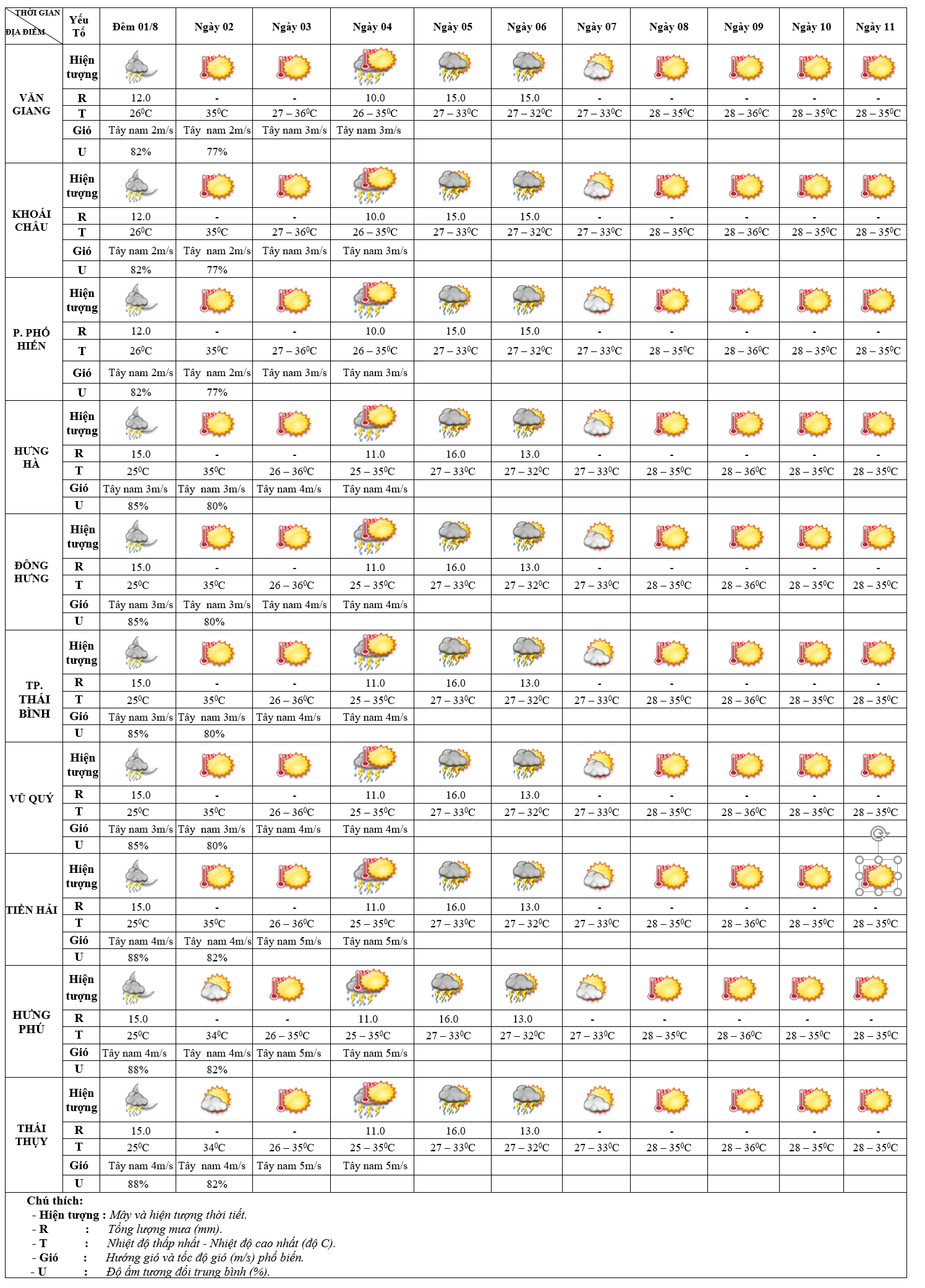 DỰ BÁO THỜI TIẾT ĐIỂM 10 NGÀY KHU VỰC HƯNG YÊN TỪ ĐÊM 01/8 – 11/8/2025