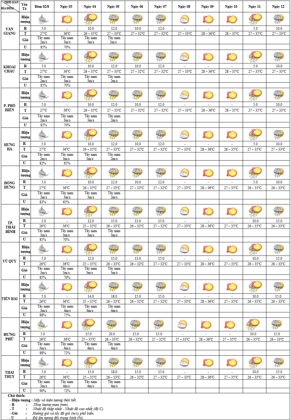 DỰ BÁO THỜI TIẾT ĐIỂM 10 NGÀY KHU VỰC HƯNG YÊN TỪ ĐÊM 02/8 – 12/8/2025