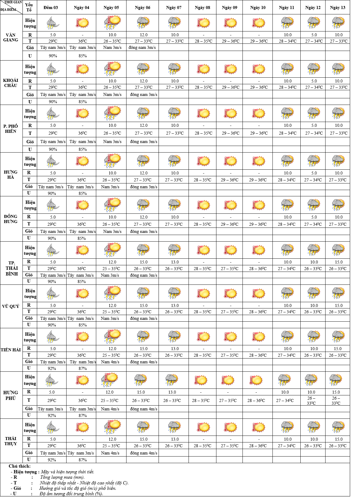 DỰ BÁO THỜI TIẾT ĐIỂM 10 NGÀY KHU VỰC HƯNG YÊN TỪ ĐÊM 03 – 13/8/2025