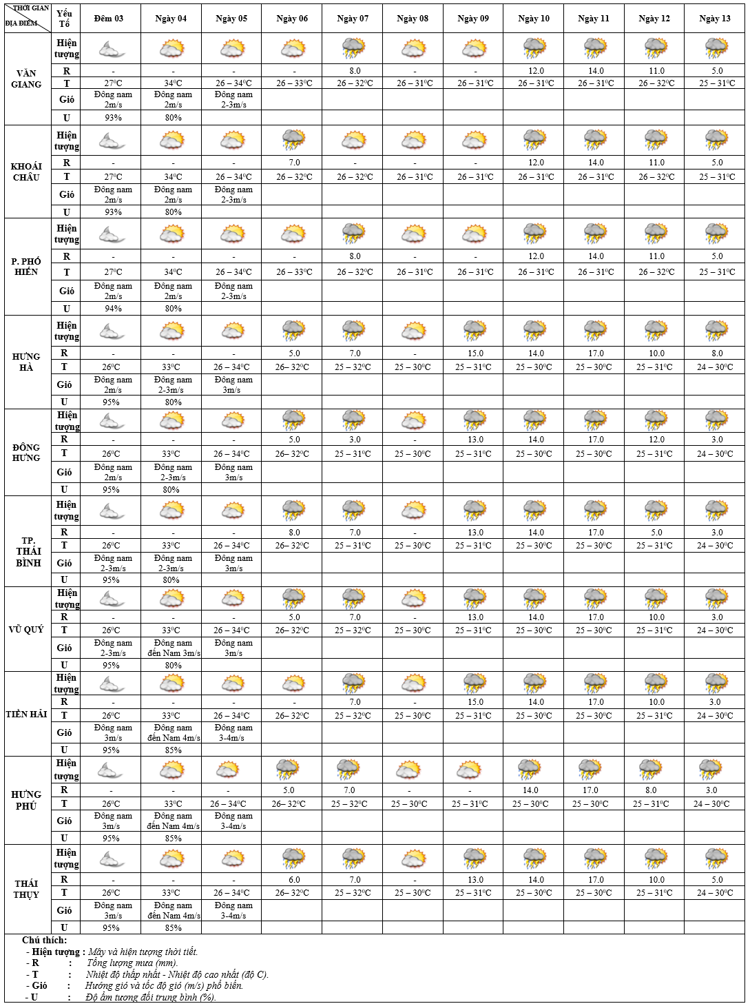 DỰ BÁO THỜI TIẾT ĐIỂM 10 NGÀY KHU VỰC HƯNG YÊN TỪ ĐÊM 03 – 13/9/2025