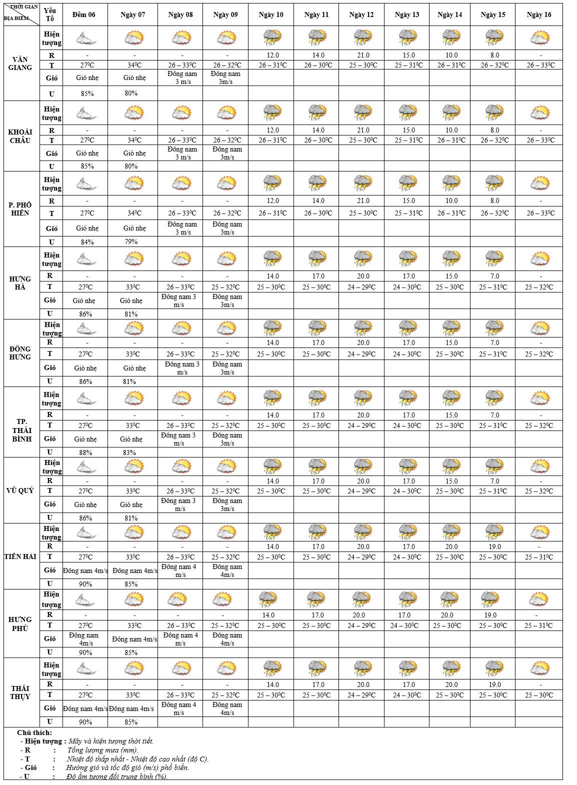 DỰ BÁO THỜI TIẾT ĐIỂM 10 NGÀY KHU VỰC HƯNG YÊN TỪ ĐÊM 06 – 16/9/2025