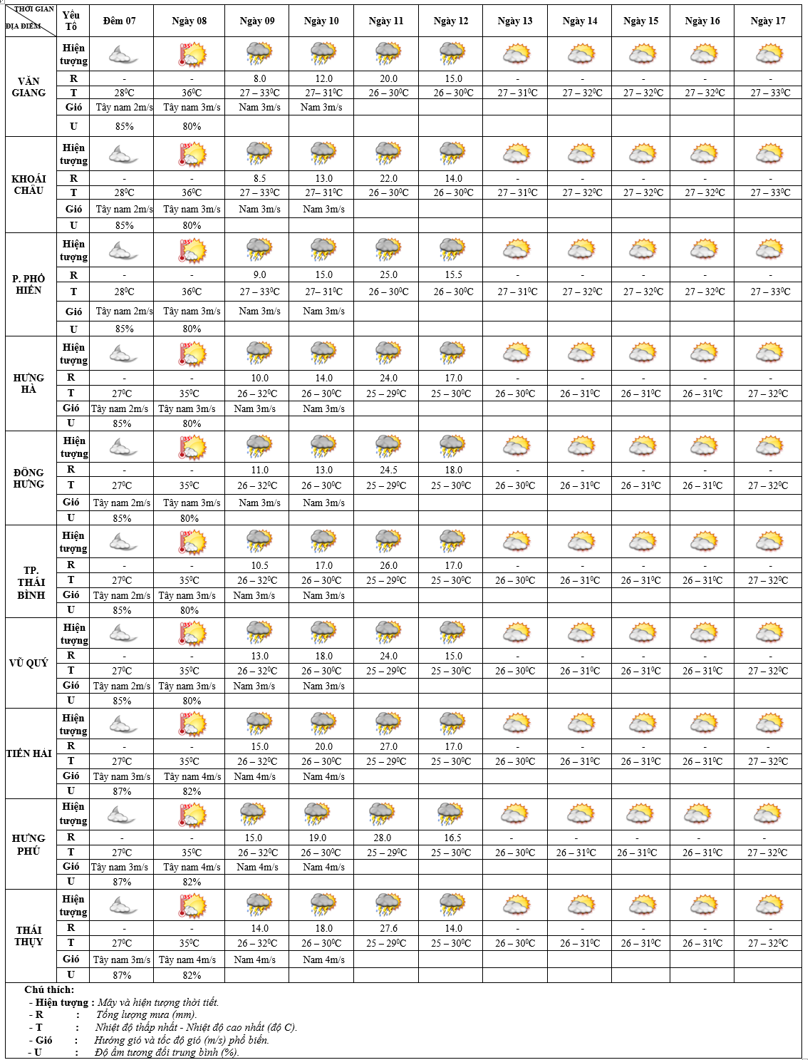 DỰ BÁO THỜI TIẾT ĐIỂM 10 NGÀY KHU VỰC HƯNG YÊN TỪ ĐÊM 07 – 17/9/2025